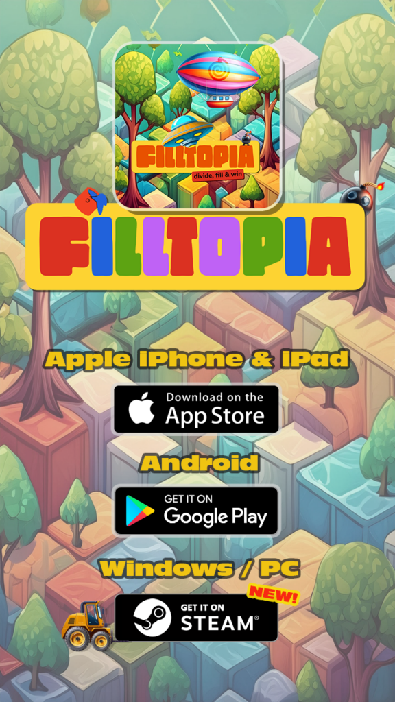 Filltopia – our casual puzzle game highlight for Mobiles (iPhone/iPad/Android) is now also available for Windows PCs (via Steam).